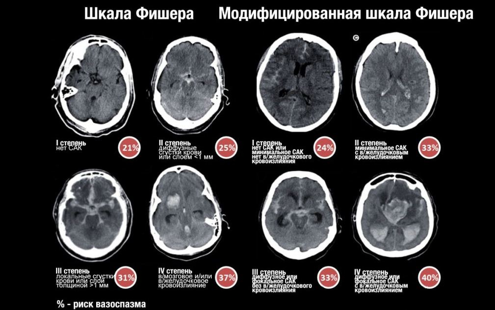 Определение риска симптоматического вазоспазма при аневризматическом субарахноидальном кровоизлиянии по данным КТ